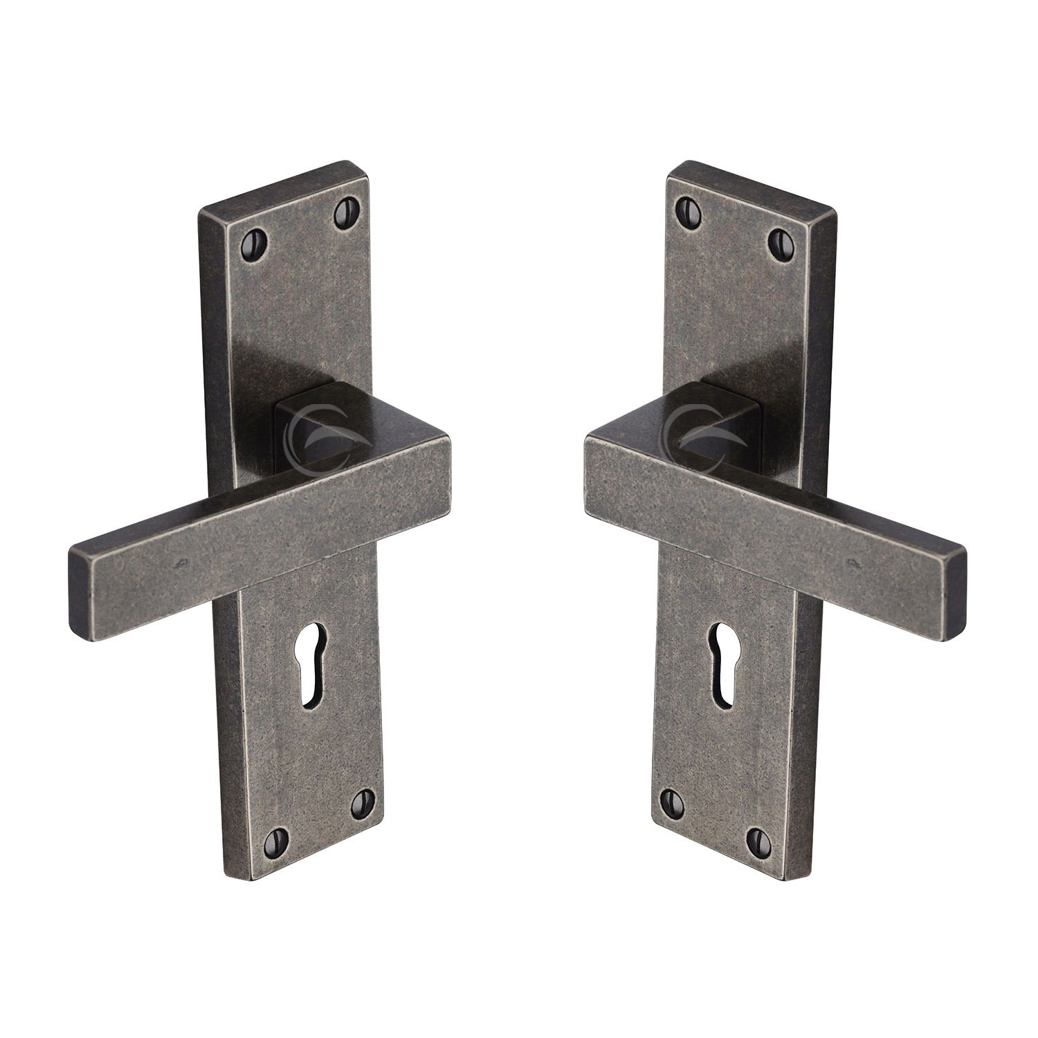 Elevate your interiors with the Rustic Pewter Door Handle Lever Lock from the esteemed M.Marcus Architectural Hardware Range by M Marcus. Crafted from high-quality pewter, this handle boasts a timeless rustic finish that seamlessly blends with both heritage and contemporary settings. Its elegant silhouette and traditional design elements make it the perfect choice for those seeking to add a touch of classic charm to their home. The subtle texture and understated sheen offer a sophisticated edge, ensuring a harmonious fit with any décor style. Choose this Cheswell design for a distinctive and enduring addition to your doors.