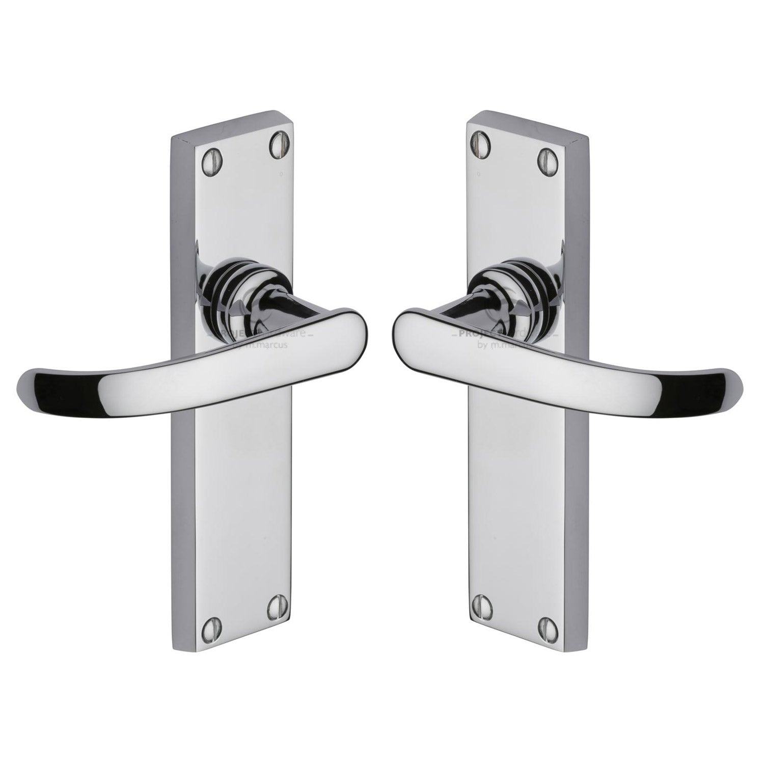 Elevate your interior with the Avon Design Door Handle Lever Latch from the esteemed Project Hardware Range by M Marcus. Crafted from durable zinc alloy, this handle boasts a polished chrome finish that exudes a sleek, modern aesthetic. Its refined silhouette seamlessly complements contemporary interiors, adding a touch of sophistication to any room. The polished sheen of the chrome finish not only enhances its visual appeal but also ensures lasting durability and easy maintenance. Ideal for those seeking a blend of style and functionality, this door handle is a perfect choice for updating your space with a chic, modern touch.