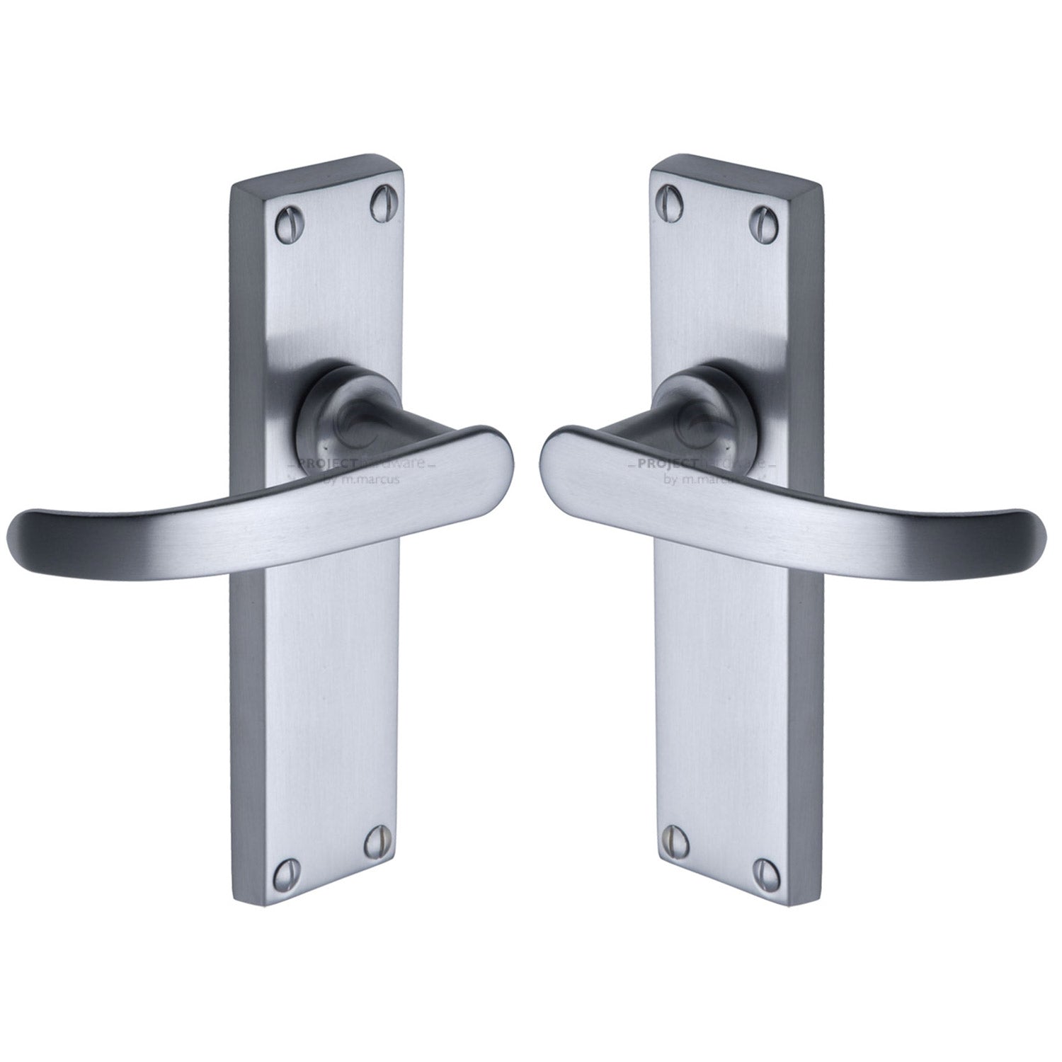 Elevate your interiors with the Avon Design Door Handle Lever Latch from the Project Hardware Range by M Marcus. Crafted from durable zinc alloy, this handle showcases a sophisticated satin chrome finish, offering a sleek and modern touch to any door. Its elegant silhouette effortlessly complements both contemporary and traditional settings, making it a versatile choice for any home. The satin sheen provides a subtle yet stylish contrast to other fixtures, while the smooth texture ensures a comfortable grip. Ideal for those seeking a blend of functionality and aesthetic appeal, this handle is a testament to refined design and quality craftsmanship.
