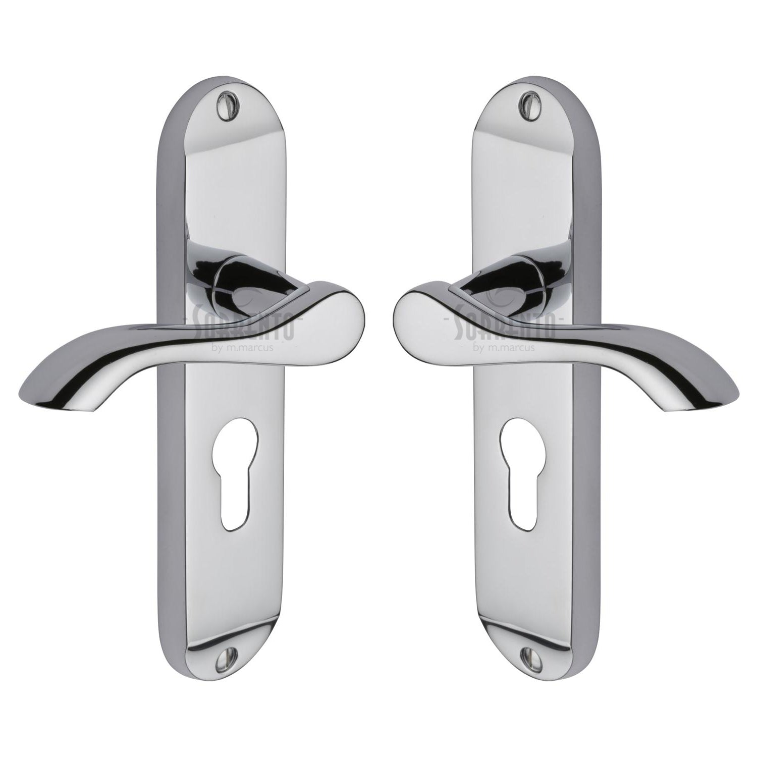 Elevate your interior with the Sorrento Door Handle, part of the esteemed Sorrento Range by M Marcus. Designed for the Euro Profile Plate, this handle boasts the sleek Aurora design, exuding modern elegance. Crafted from durable zinc alloy, it features a polished chrome finish that adds a touch of sophistication to any door. Its clean, contemporary silhouette is perfect for those seeking a stylish yet functional addition to their home. The lustrous sheen of polished chrome enhances the handle's refined appeal, making it an ideal choice for both contemporary and heritage interiors. Transform your space with this exquisite piece of hardware today from the Sorrento Range by M Marcus.