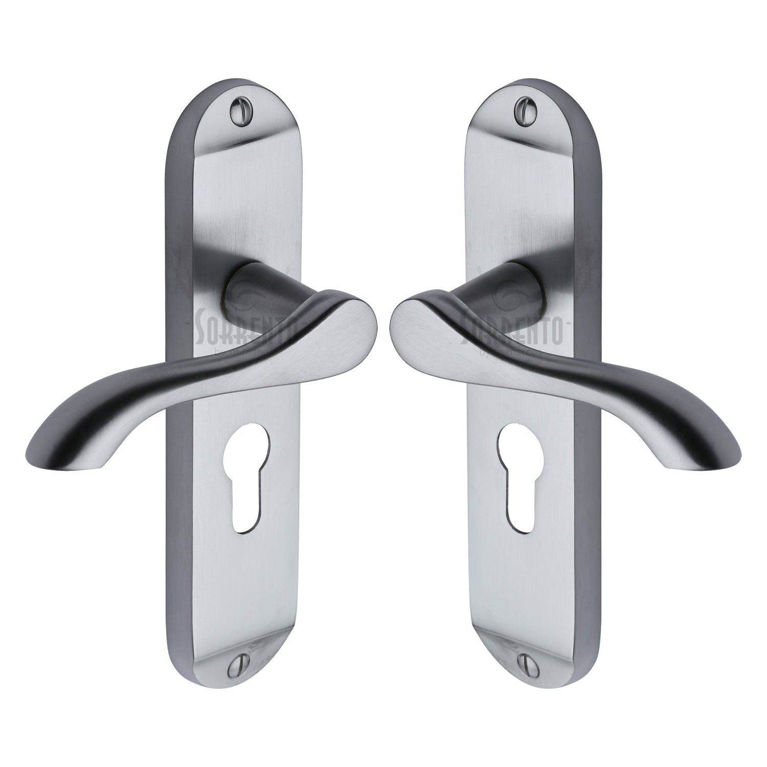 Elevate your interior with the Sorrento Door Handle for Euro Profile Plate in the Aurora Design, a part of the esteemed Sorrento Range by M Marcus. Crafted from durable zinc alloy, this handle boasts a sophisticated satin chrome finish, offering a subtle sheen that complements both contemporary and traditional settings. Its sleek silhouette and modern design make it an ideal choice for those looking to add a touch of elegance to their doors. Whether you're updating a single room or revamping your entire home, this handle provides a stylish and functional solution that seamlessly integrates with a variety of interior styles from the Sorrento Range by M Marcus.