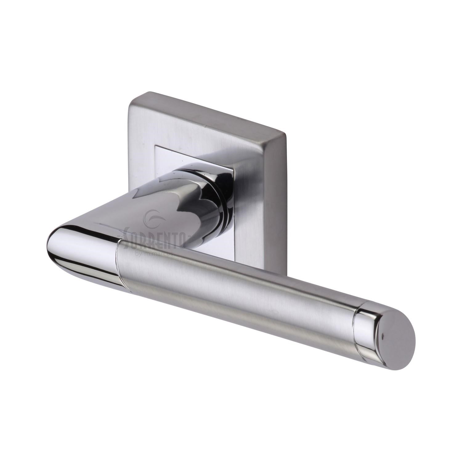Elevate your interior with the Sorrento Door Handle Lever Latch on Round Rose, a stunning piece from the Sorrento Range by M Marcus. Crafted from durable zinc alloy, this handle is finished in a luxurious Apollo sheen, offering a sophisticated touch to any door. Its modern Mercury Square design effortlessly combines sleek lines with a subtle elegance, making it a perfect fit for contemporary interiors. The rounded rose adds a touch of softness, balancing the handle's bold silhouette. Ideal for those seeking a blend of style and functionality, this handle promises to enhance your home's aesthetic with its refined and polished appearance.