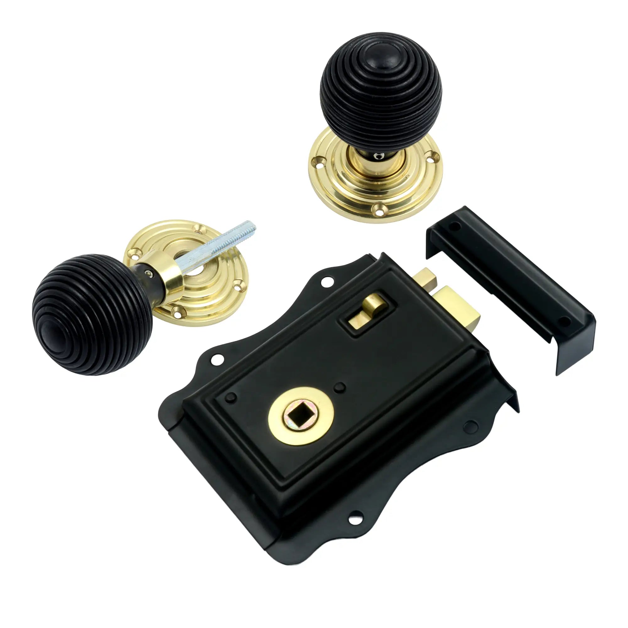 The Prima Fancy Rim Lock is a perfect blend of style and functionality. Crafted from high-quality solid brass, this lock set features a striking black latch paired with exquisite ebony reeded knobs, each measuring 54mm in diameter. The polished brass detachable rose adds a touch of elegance, making it suitable for various interior styles. The reversible lock and locking snib enhance security, while the maintenance-free finish ensures easy upkeep with just a damp cloth. This matching set is ideal for those seeking both aesthetic appeal and reliable performance.