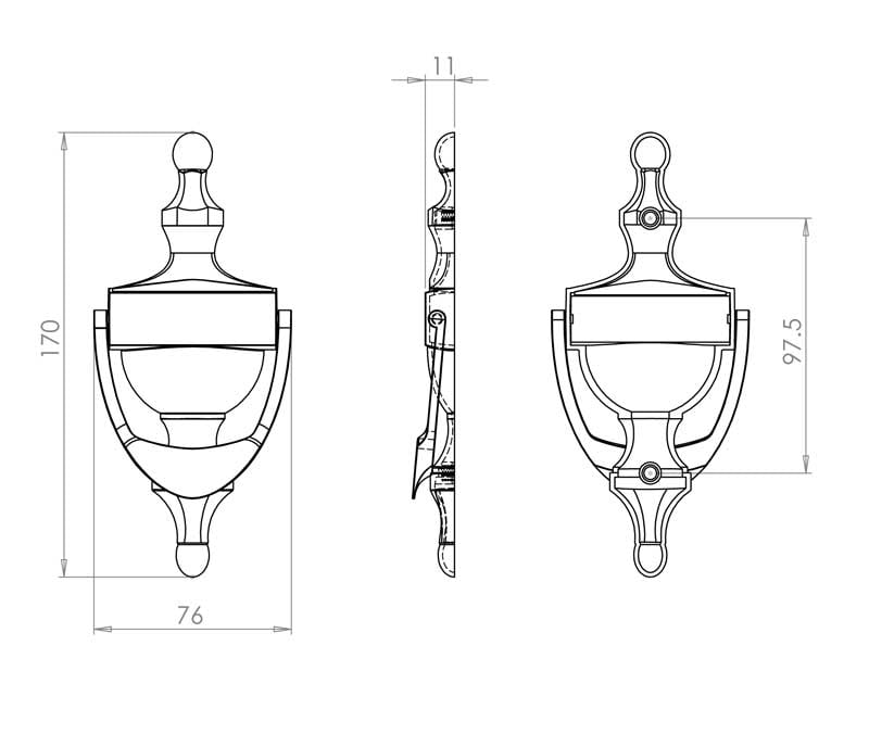 - Function: Traditional urn-style door knocker with a modern satin finish