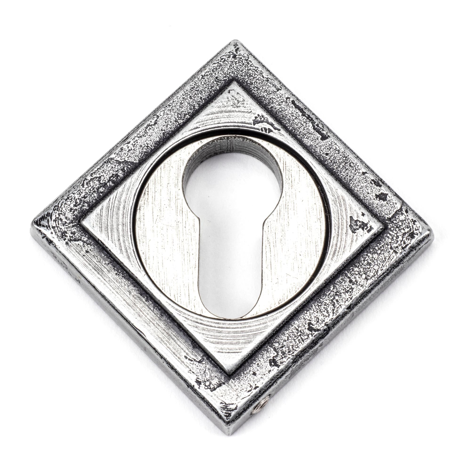Upgrade your space with the Round Euro Escutcheon - Square in a refined Pewter Patina finish. Our vast range of escutcheons are used to decorate key holes, adding the finishing touch to any locking door. This concealed feature has a square cover that brings a contemporary edge to a traditional design. Our escutcheons are designed to complement all our mortice knob and lever on rose designs. This escutcheon is used with a Euro profile lock in conjunction with a Euro cylinder.