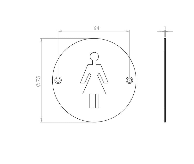 The Toilet Signs - Stainless Steel - Female in Satin Anodised Aluminium finish offers clear and professional restroom identification. It is a durable and stylish option for both commercial and residential applications.