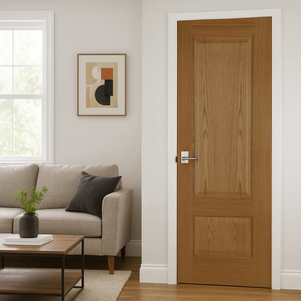 The Oak Heath 2 Panel Prefinished door offers a timeless addition to any home with its traditional two panel design. Featuring raised and fielded panels complemented by elegant raised mouldings, this door exudes sophistication and style. Crafted from high-quality oak, it showcases a beautiful grain that is enhanced by a clear satin lacquer finish, making it ready for immediate installation. The pre-finished nature of the door saves time and effort, ensuring a hassle-free experience for homeowners. Its classic design makes it versatile, suitable for both traditional and modern interiors. Ideal for use in living rooms, dining areas, or bedrooms, this door can seamlessly blend into any setting while adding a touch of elegance. With its robust construction and refined appearance, the Oak Heath 2 Panel Prefinished door is a perfect choice for those seeking both durability and aesthetic appeal.