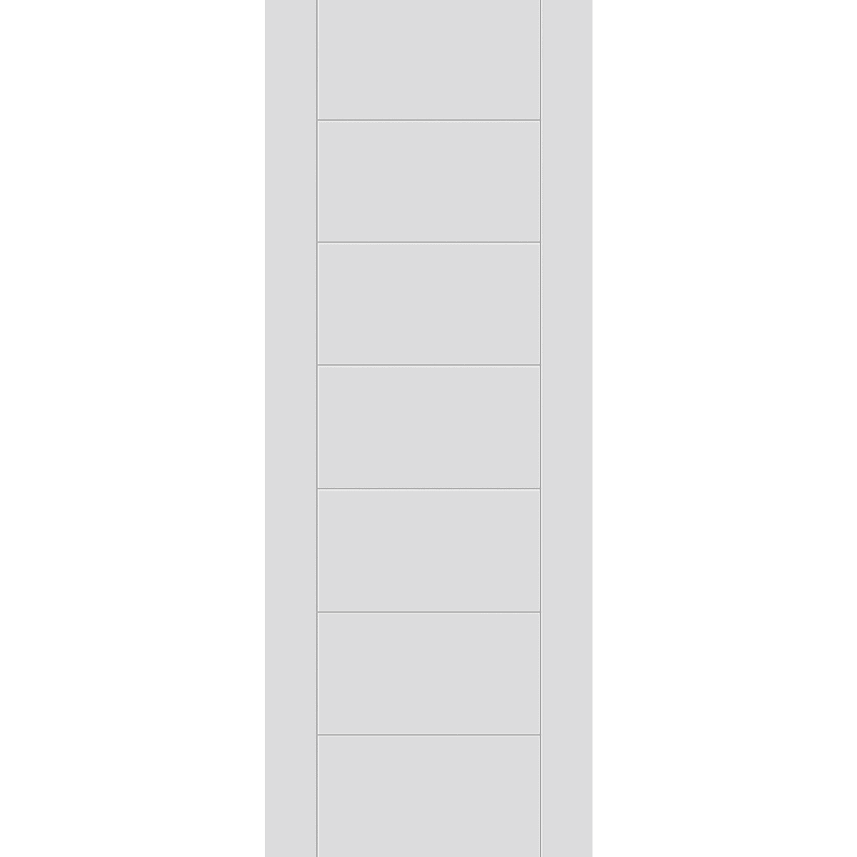 The White Basic Primed Corsica door is a sleek and modern choice for any interior space. Featuring a distinctive 'V' groove design, this door brings a contemporary touch to your home or office. It comes with a basic white primer, providing a smooth foundation for painting, allowing you to customise it to suit your décor. The door is part of the Trade Range, known for offering high-quality products at competitive prices. Its versatility is evident in the wide range of sizes available, and bespoke sizes can also be sourced to fit unique requirements. This door is ideal for those looking to enhance their interiors with a simple yet stylish element. Its clean lines and minimalist design make it compatible with a variety of architectural styles, making it a versatile addition to any project.