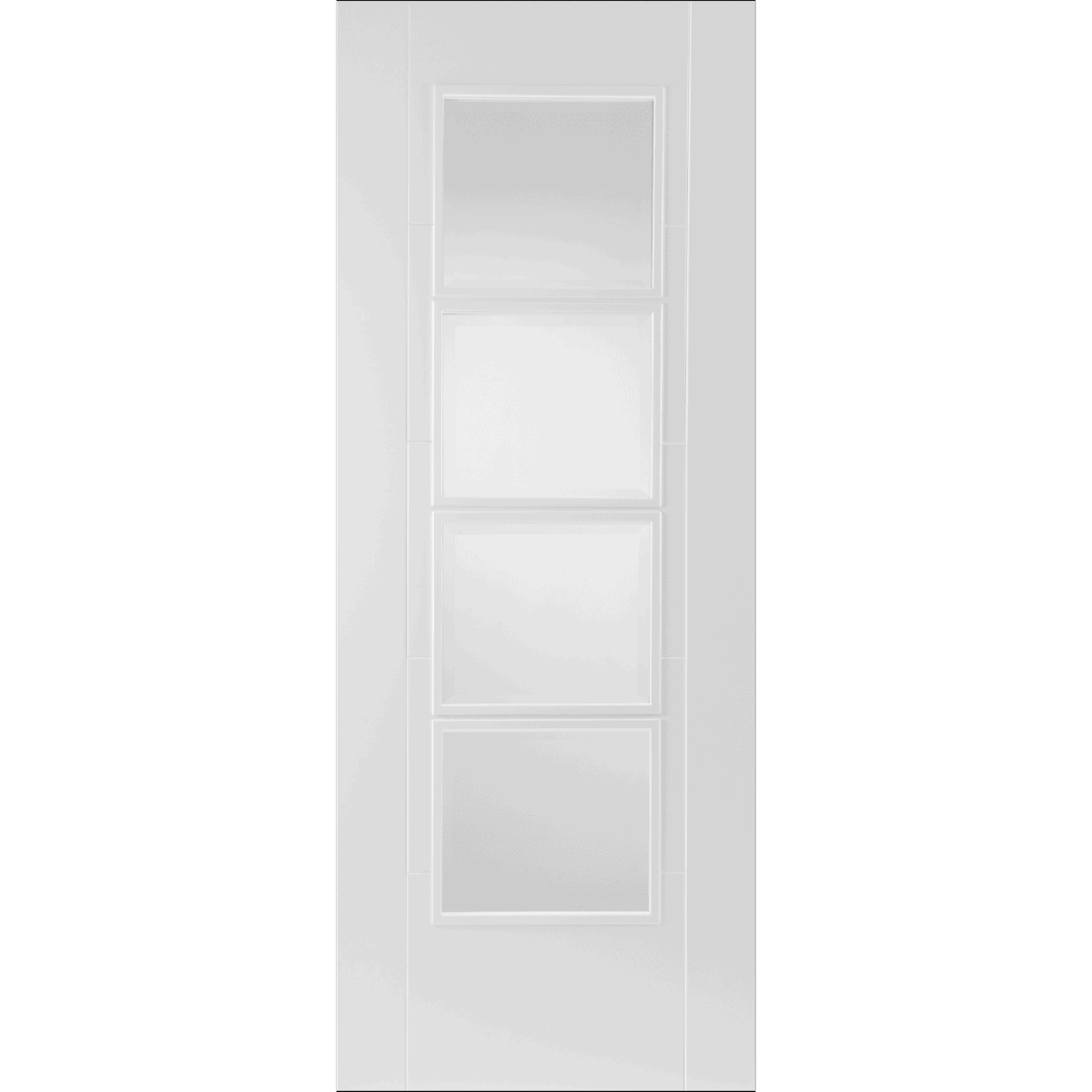 The White Basic Primed Iseo 4 Light Glazed door is an excellent choice for those seeking a blend of style and affordability. Part of the ISEO Trade Range, this door is supplied in a smooth, white primed finish with a V groove design that adds a touch of elegance to any interior. It features four clear flat glass panels, allowing natural light to flow through, enhancing the brightness of your home. With a semi-solid construction, it offers a balance of durability and lightweight handling. This door is perfect for both contemporary and traditional settings, making it a versatile addition to any room. Available in a variety of sizes, it caters to a wide range of requirements, and bespoke sizes can be sourced if needed. Additionally, the door is also offered in a Deluxe White Prime and Oak Veneer for those who desire a more premium look.