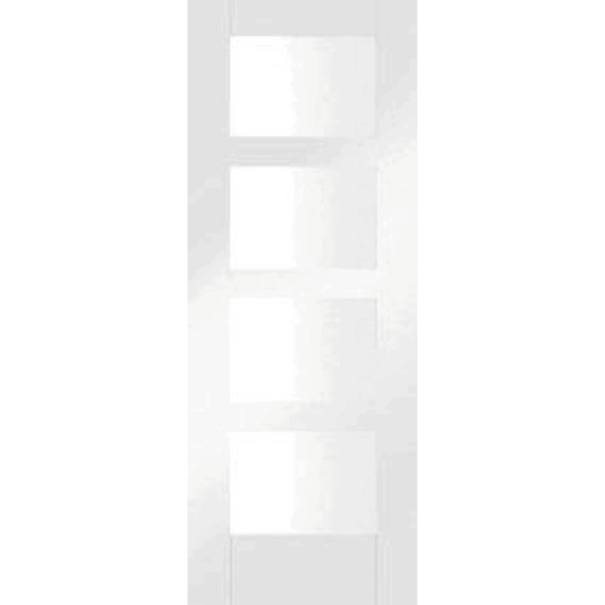 The White Primed Contemporary 4 Light door is a sophisticated choice for modern interiors, combining style and functionality. Supplied as deluxe primed, it requires only a topcoat to achieve a fully decorated finish, saving you time and effort. This shaker-style door features flat panels accentuated by V grooves, offering a sleek and clean look. The clear glazing allows natural light to flood through, brightening any space while maintaining privacy. Available in a range of standard sizes, this door can also be customised to bespoke dimensions to fit unique requirements. The 35mm solid core ensures durability and sound insulation, making it ideal for both residential and commercial settings. Whether used in homes or offices, the White Primed Contemporary 4 Light door adds a touch of elegance and practicality to any room.