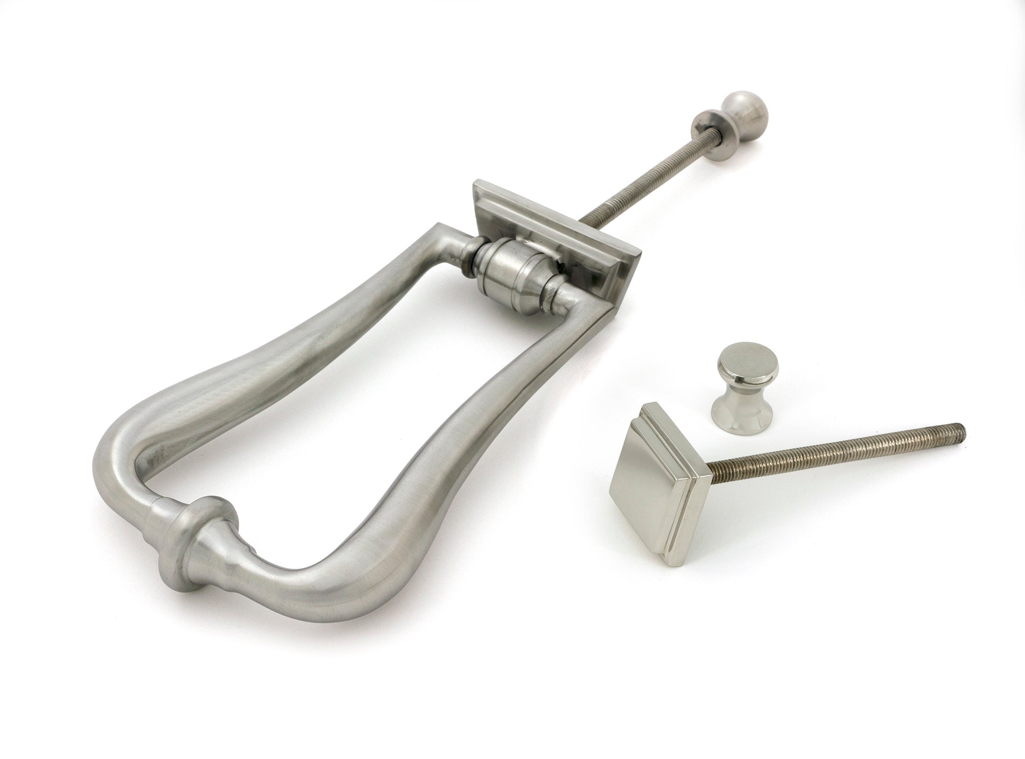 - Installation: Bolt-through fixing for the knocker and strike plate, fitted with a dome head cap on the internal side