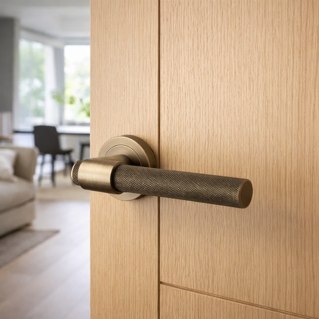 AXS Dakota Knurled Door Handles on Rose - Pair