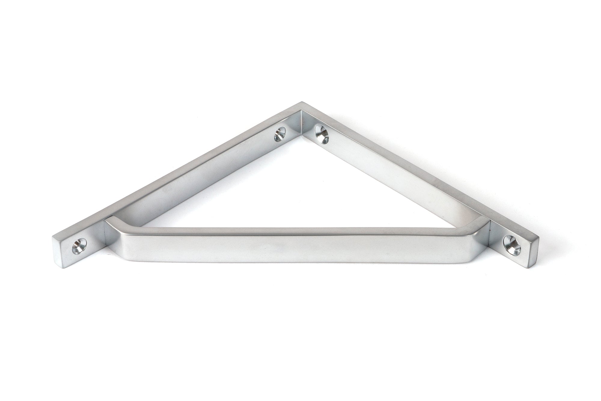 The Barton Shelf Bracket - 150mm x 150mm in Satin Chrome finish offers a distinct contemporary edge, creating a striking focal point in any space. Crafted from solid brass, these shelf brackets emphasize high-quality materials and manufacturing techniques, making them a perfect design choice for any shelving.