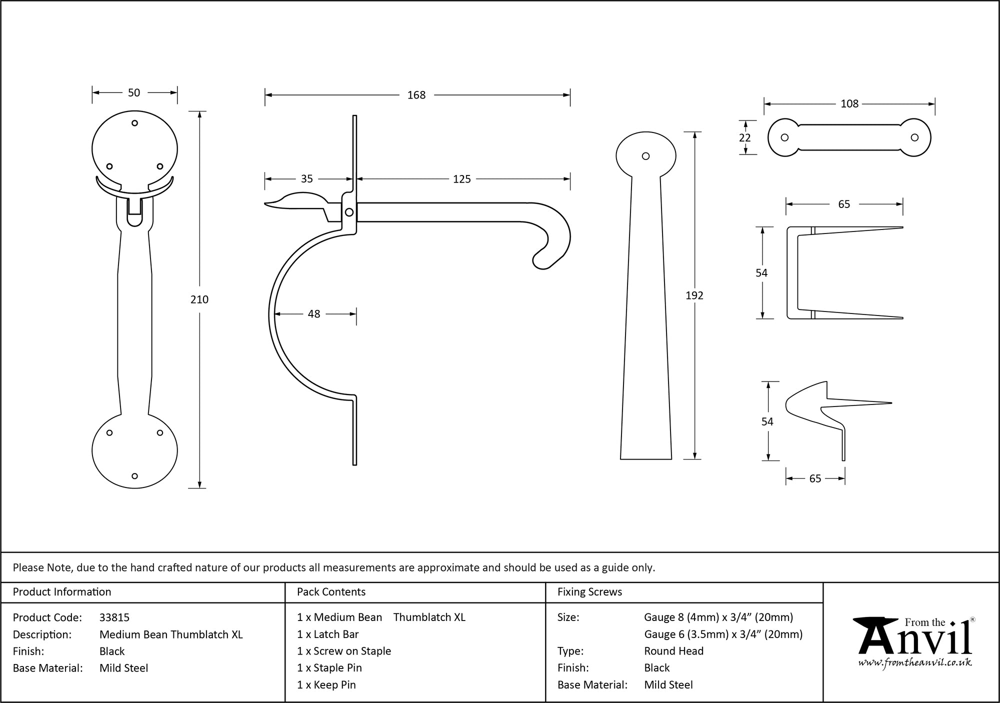 Bring style and performance together with the Bean Thumblatch - Medium XL in Beeswax. Traditionally used on a ledge and braced door, this thumb latch set includes a decorative door latch with a thumb-shaped lever. When pressed down, the lever operates a thumb bar that passes through the door, lifting the latch bar on the opposite side and allowing the door to open.