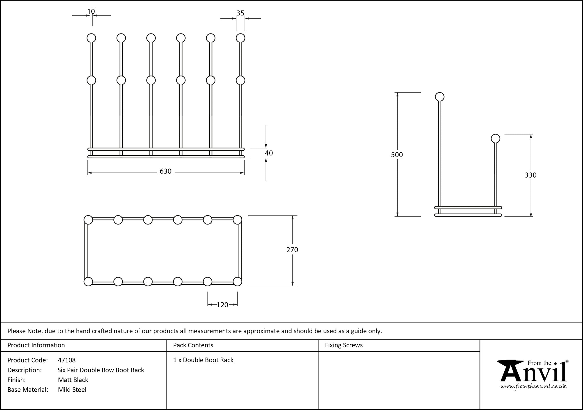 - Material: Hand forged mild steel