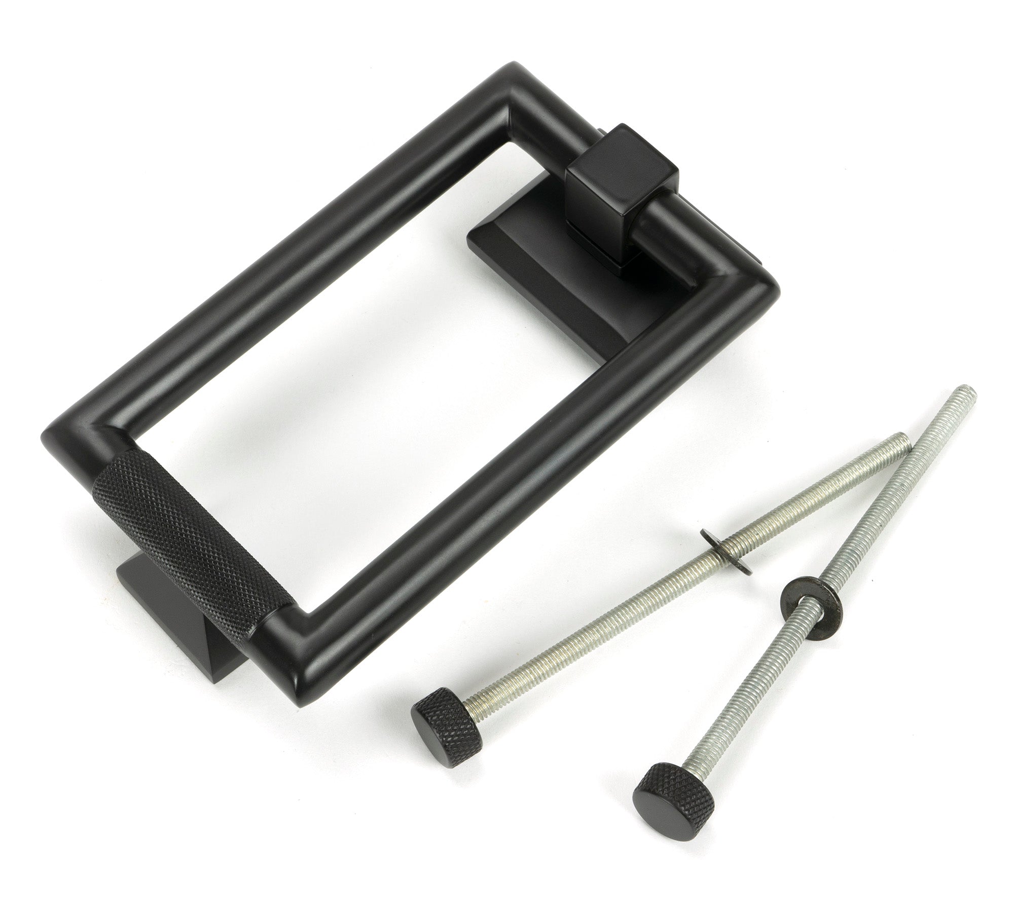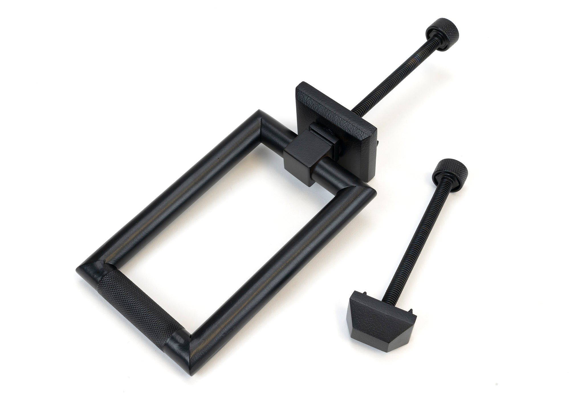 Upgrade your space with the Brompton Door Knocker in a refined Matt Black finish. Our extensive selection of door knockers is designed to suit a variety of doors including timber, composite, uPVC, and aluminium, offering both traditional and contemporary designs. The Brompton suite is our most contemporary design to date and features a textured knurled pattern. The industrial styling of the diamond effect creates a modern range of products that can be used throughout your property. Our Brompton range is forged from mild steel which emphasizes the high-quality materials and manufacturing techniques used. A perfect design choice for external doors with matching products available. Coordinate with our matching Brompton centre door knobs for a truly grand entrance. Fixes to your door using a bolt-through fixing for the knocker and strike plate which is fitted with a matching knurled bolt head on the internal side of the door. Supplied with matching 110mm stainless steel threaded bolts which provide a bolt-through fixing.