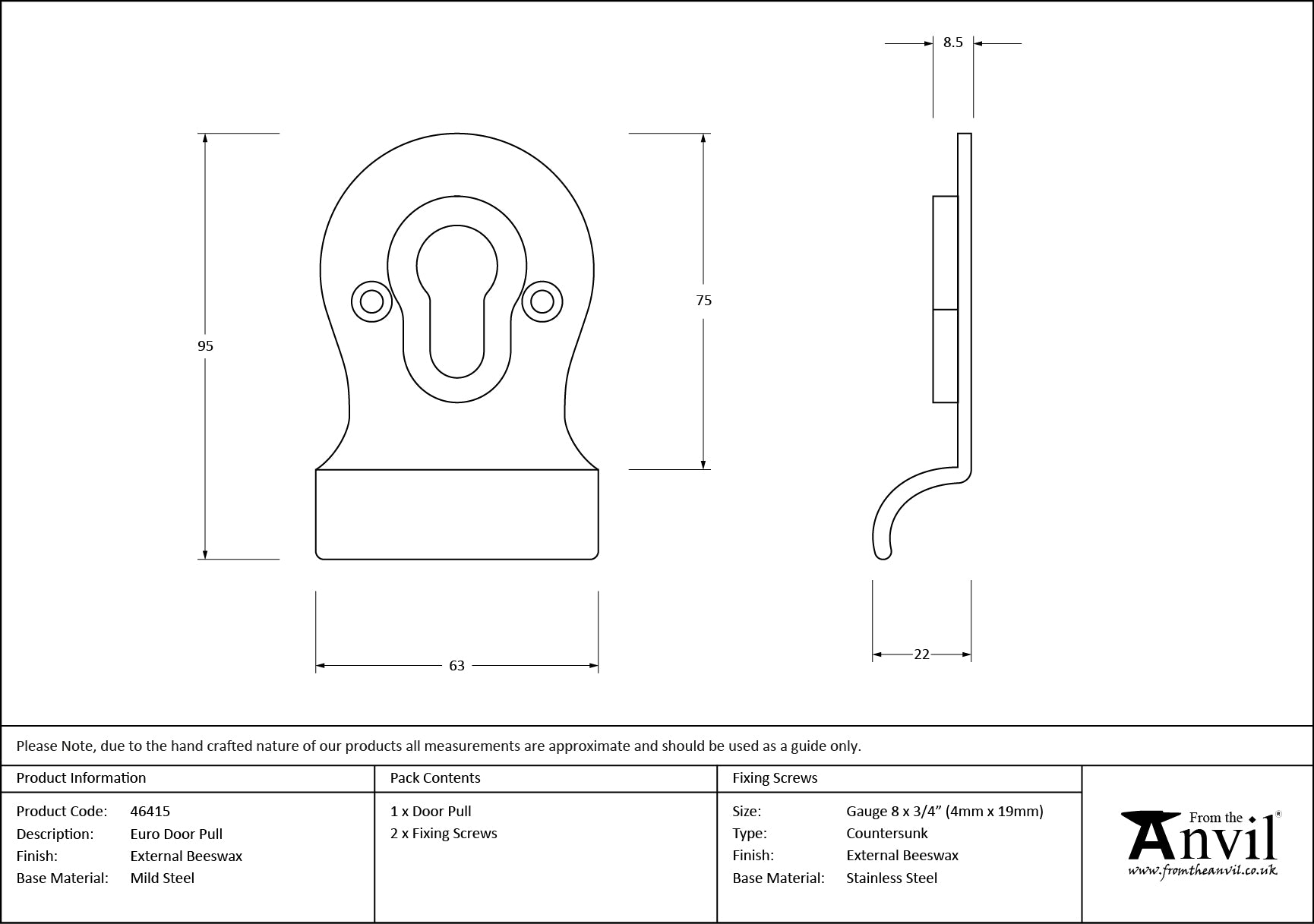 Explore the elegance of the Euro Door Pull in the stylish External Beeswax tone, expertly forged from mild steel to enhance your external doors. Pair it with our matching External Beeswax door furniture for a striking entrance feature.