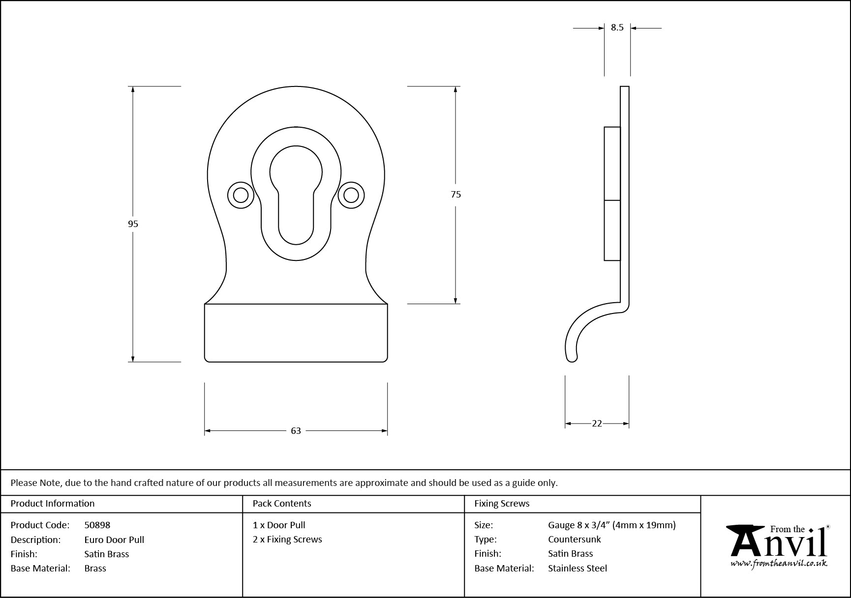 The Euro Door Pull in Aged Brass finish offers a perfect design choice for external doors. Forged from solid brass, it complements your entrance beautifully when combined with our matching Aged Brass door furniture. This pull is specifically designed for use with a Euro profile lock in conjunction with a Euro cylinder. It is supplied with matching SS wood screws.