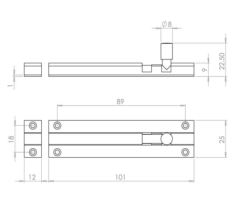 The Aluminium Straight Barrel Door Bolts (Box of 10) - 100mm in Satin Anodised Aluminium finish offers a secure solution for internal door fastening. Designed with robustness and simplicity in mind, these bolts are ideal for large-scale residential and commercial projects.