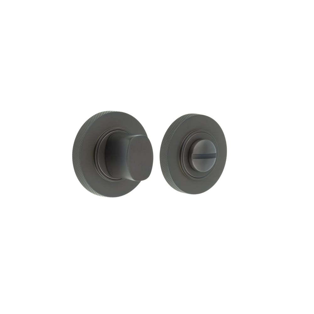 Explore the elegance of the Burlington Turns & Release - Modern Thumbturn - Knurled Rose in the stylish Dark Bronze tone. This product offers added security and privacy to your home, suitable for both bathroom and bedroom doors. Its sleek and minimalistic design allows it to blend seamlessly with any decor while providing a high-end look. Crafted from solid brass, it ensures durability and longevity. Elevate your home's security and aesthetics with this premium product available in five high-quality finishes.