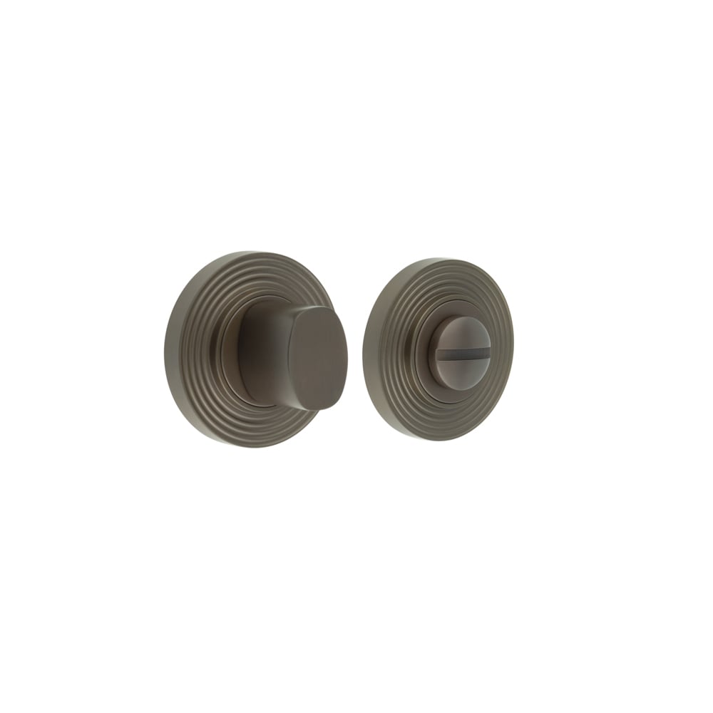 Explore the elegance of the Burlington Turns & Release - Modern Thumbturn - Reeded Rose in the stylish Dark Bronze tone. This product enhances the security and privacy of your home, ideal for bathroom and bedroom doors. Its sleek and minimalistic design seamlessly integrates with any decor, offering a high-end aesthetic. Crafted from solid brass, it promises durability and longevity. Elevate your home's security and style with this exquisite piece, available in five premium finishes.