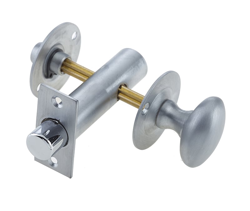 Explore the elegance of the Jedo Bathroom Bolt with Mortice Bolt in the stylish Satin Chrome tone, offering a sleek and practical solution for securing bathroom doors. This set includes a 60mm mortice rack bolt and a turn and release mechanism with an oval knob and splined spindle, ensuring both style and ease of operation.