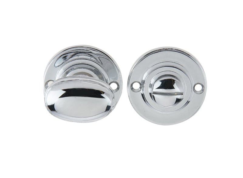 Explore the elegance of the Jedo Oval Ringed Turn & Release - 40mm in the stylish Polished Chrome tone. This bathroom door furniture piece features a sleek and contemporary design, ensuring a reliable locking solution for bathrooms and private spaces. The polished chrome finish adds a touch of sophistication to any decor.