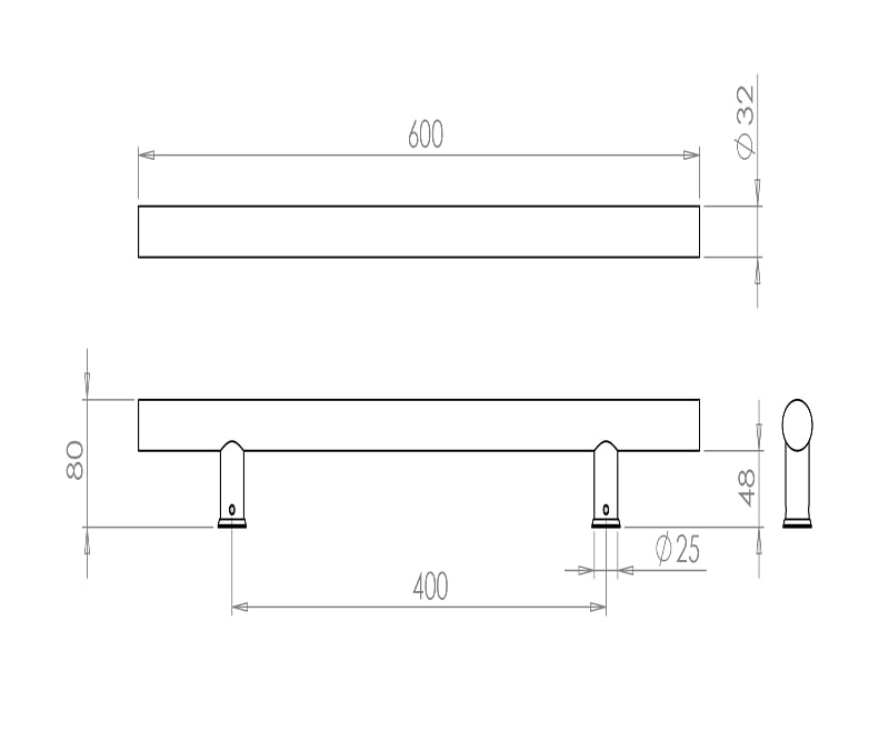 Stainless Steel Guardsman Pull Handle - 600mm x 32mm dia. - Single - Bolt Through