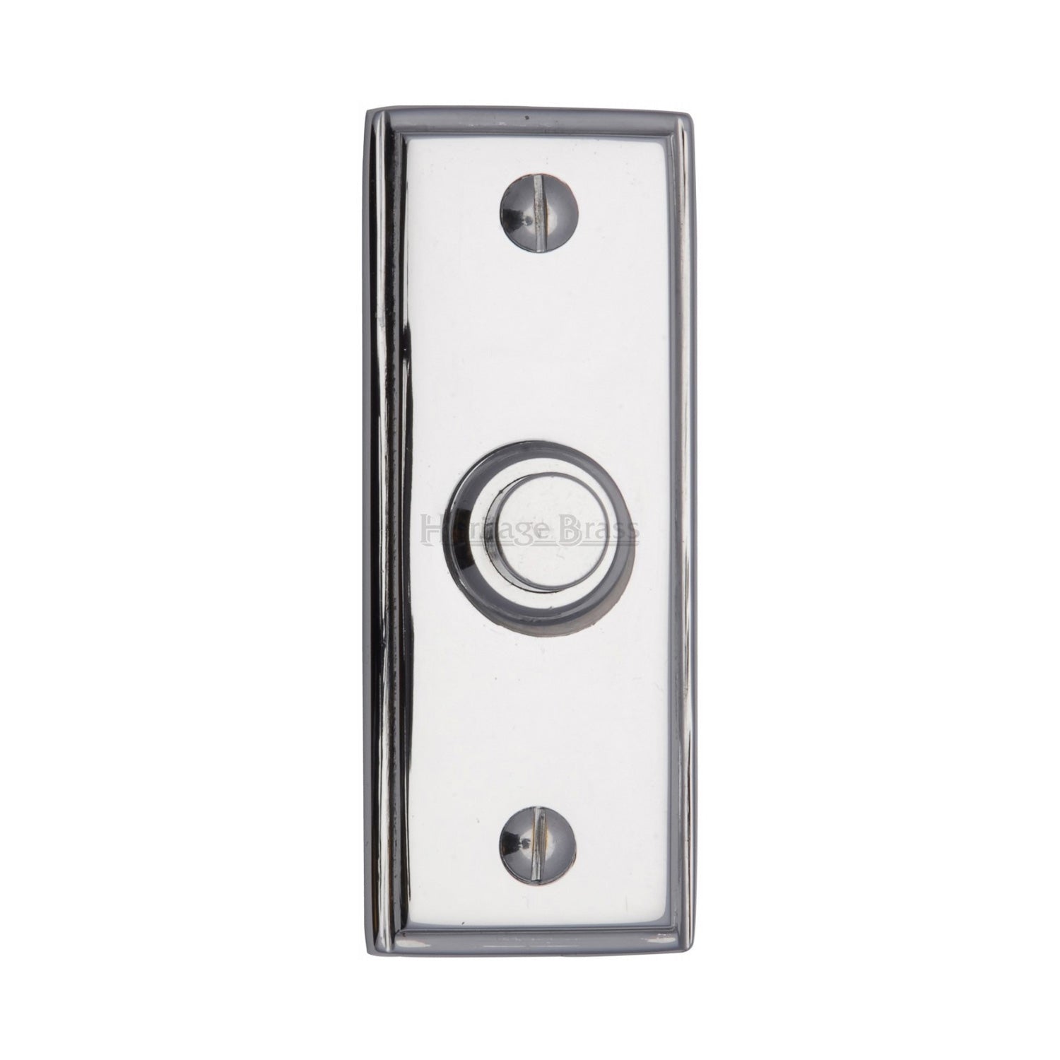 Elevate your home's entrance with the Heritage Brass Oblong Bell Push, a distinguished addition from the renowned Heritage Brass Range by M Marcus. Crafted from solid brass and finished in a sleek polished chrome, this bell push exudes a timeless elegance that complements both contemporary and heritage interiors. Its oblong silhouette offers a modern touch, while the polished sheen adds a layer of sophistication and style. Designed to make a lasting impression, this bell push seamlessly blends functionality with aesthetic appeal, ensuring your home greets guests with a refined and welcoming statement. Perfect for those who appreciate quality craftsmanship and classic design.