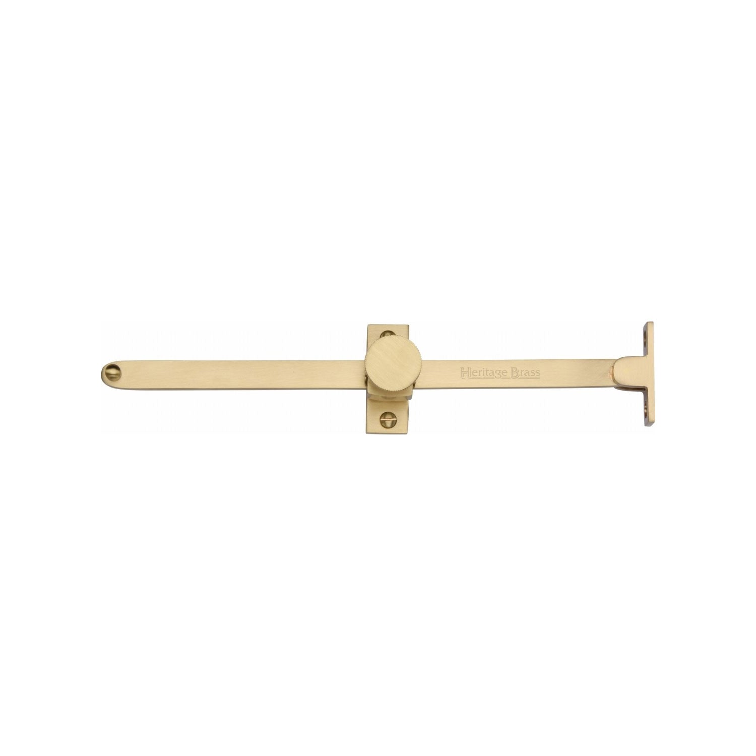 Elevate your windows with the Heritage Brass Casement Stay from the esteemed Heritage Brass Range by M Marcus. This piece, crafted from solid brass, exudes timeless elegance and durability. The satin brass finish offers a subtle sheen, perfect for adding a touch of sophistication to both contemporary and heritage interiors. Its sliding design not only ensures functionality but also complements the silhouette with a sleek, modern touch. Ideal for those seeking to blend classic charm with modern convenience, this casement stay is a flawless addition to any window, enhancing both style and utility.