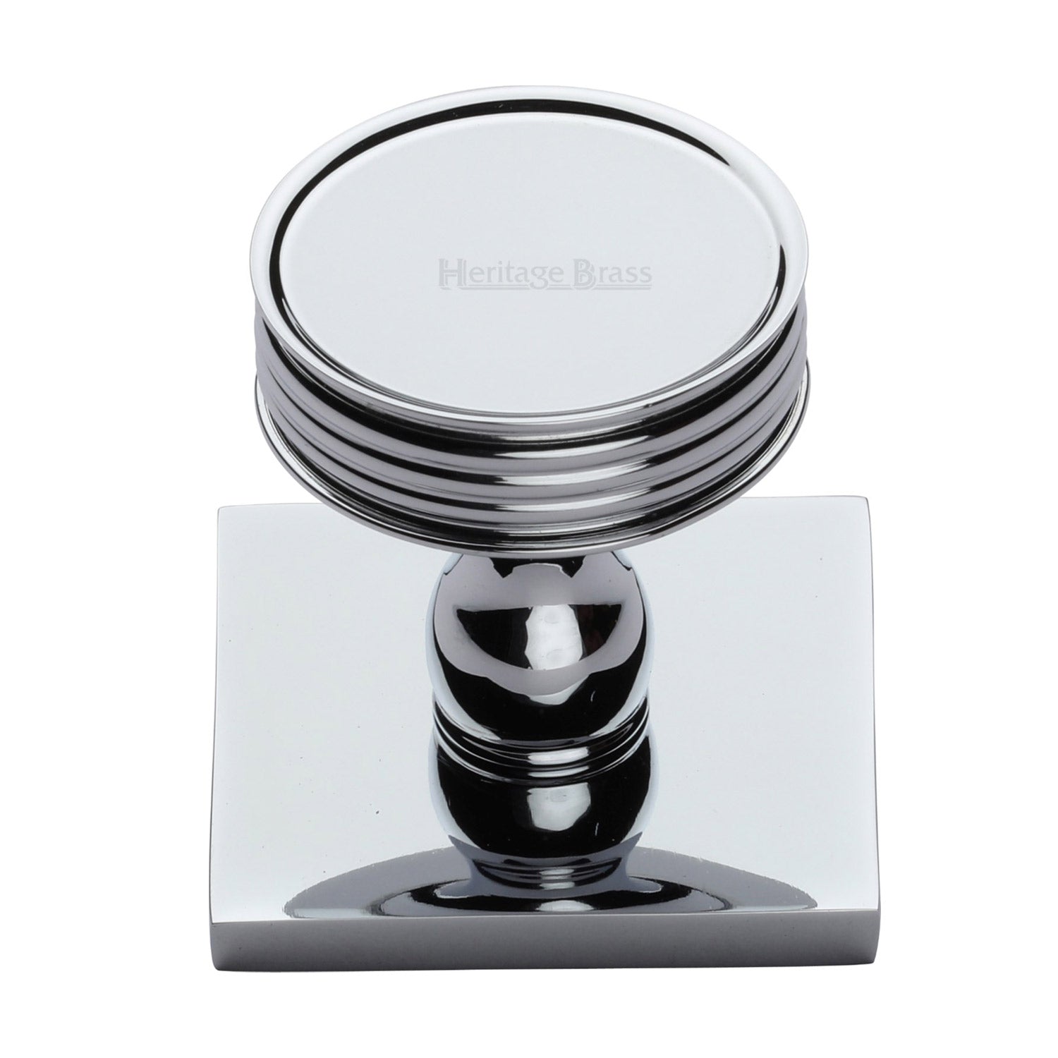 Elevate the elegance of your cabinetry with the Heritage Brass Cabinet Knob in a Venetian design, complete with a sophisticated square backplate. This exquisite piece, part of the esteemed Heritage Brass Range by M Marcus, is crafted from solid brass and finished in a gleaming polished chrome. Its timeless silhouette and luxurious sheen make it an ideal choice for both contemporary and heritage interiors, effortlessly adding a touch of refinement. The polished chrome finish enhances its modern appeal, while the solid brass construction ensures durability and quality. Perfect for those looking to infuse their space with a blend of classic charm and modern style from the Heritage Brass Range by M Marcus.