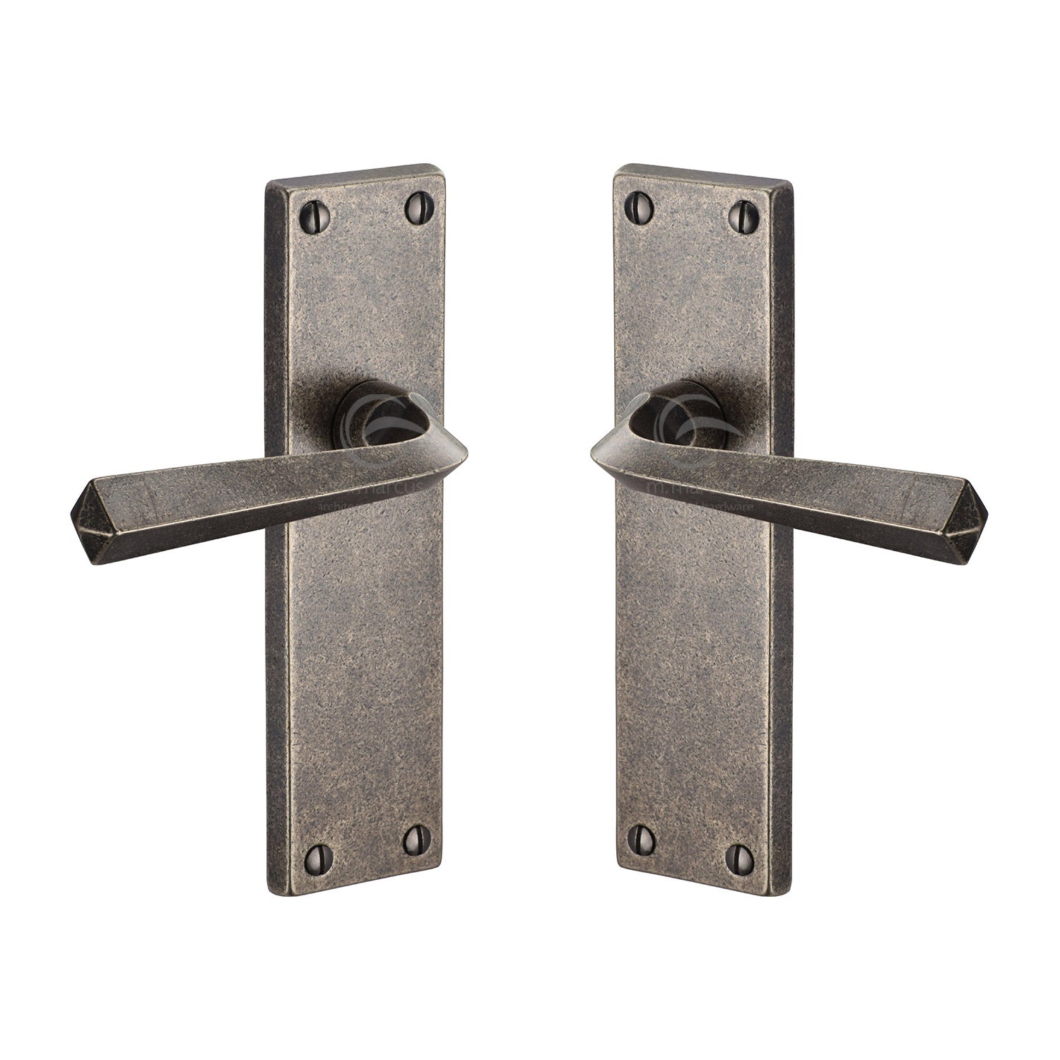 Elevate your home's aesthetic with the Rustic Pewter Door Handle Lever Latch from the Bridgnorth Design collection, a standout piece from the M.Marcus Architectural Hardware Range by M Marcus. Crafted from premium pewter, this handle exudes a timeless charm, perfect for both contemporary and heritage interiors. Its rustic finish offers a subtle sheen that complements its robust silhouette, adding a touch of elegance to any door. The expertly forged texture provides not only a tactile experience but also a sense of enduring quality. Ideal for those seeking to blend traditional craftsmanship with modern design elements, this door handle is a testament to refined style and durability.