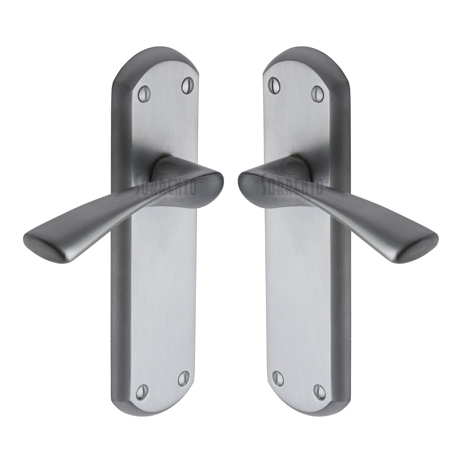 Elevate your interior with the Sorrento Door Handle Lever Latch in the Atlanta Design, a stunning piece from the Sorrento Range by M Marcus. Crafted from durable zinc alloy, this handle boasts a sophisticated satin chrome finish that exudes modern elegance. Its sleek and contemporary silhouette makes it an ideal choice for both modern and transitional interiors, seamlessly blending with various decor styles. The satin sheen provides a subtle, refined texture that enhances its visual appeal without overwhelming your space. Perfect for those seeking a touch of understated luxury, this door handle is a testament to both style and quality craftsmanship.