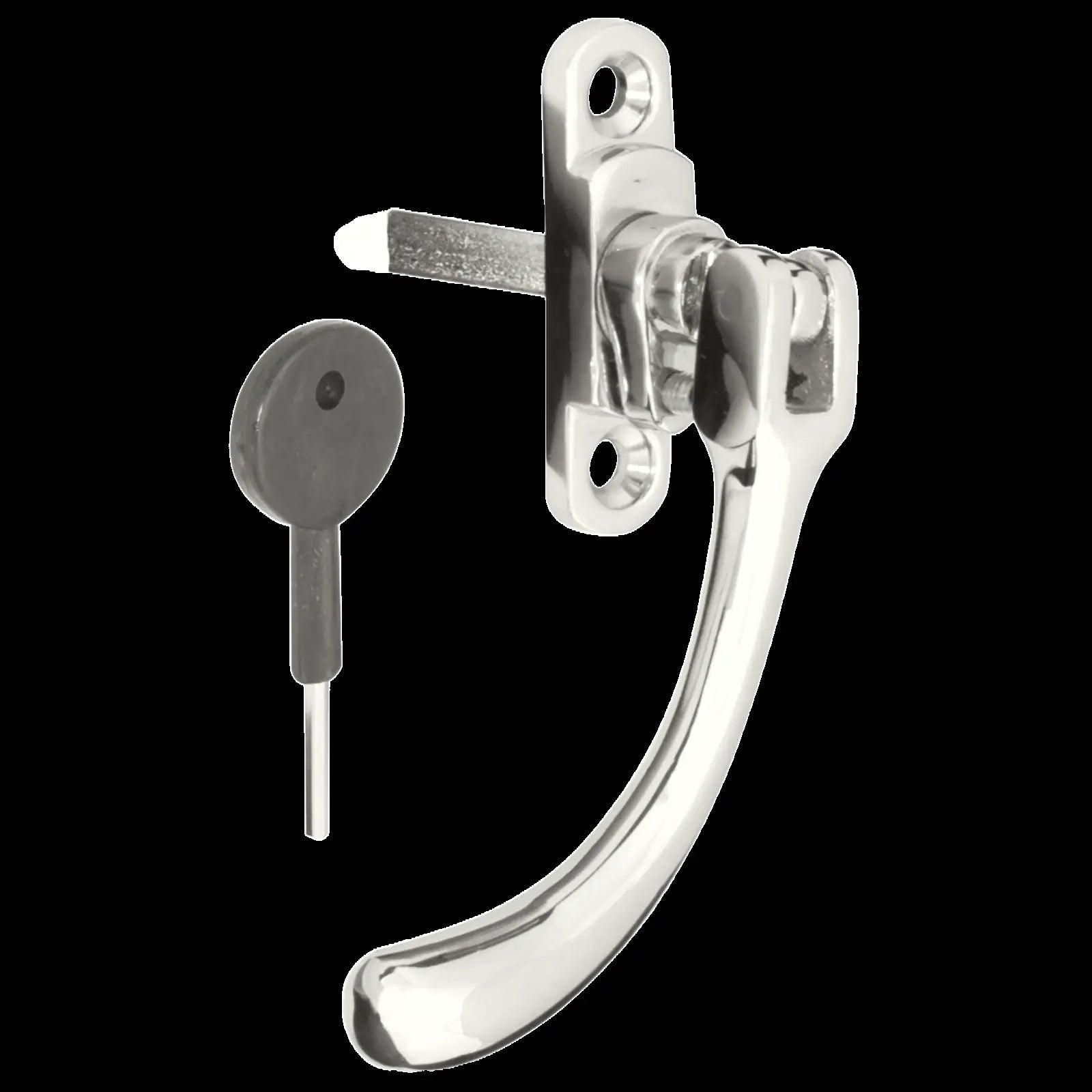Enhance your window security with the Prima Locking Window Espagnolette, designed specifically for left-hand use. Crafted from high-quality solid brass and finished in a sleek polished chrome, this espagnolette not only provides durability but also adds a touch of elegance to your windows. The handle measures 90mm, while the back plate dimensions are 58mm x 16mm, ensuring a perfect fit. With a spindle size of 7.5mm and fixing centres at 42mm, installation is straightforward. Each unit is sold individually and comes complete with a locking key, ensuring peace of mind for your home.
