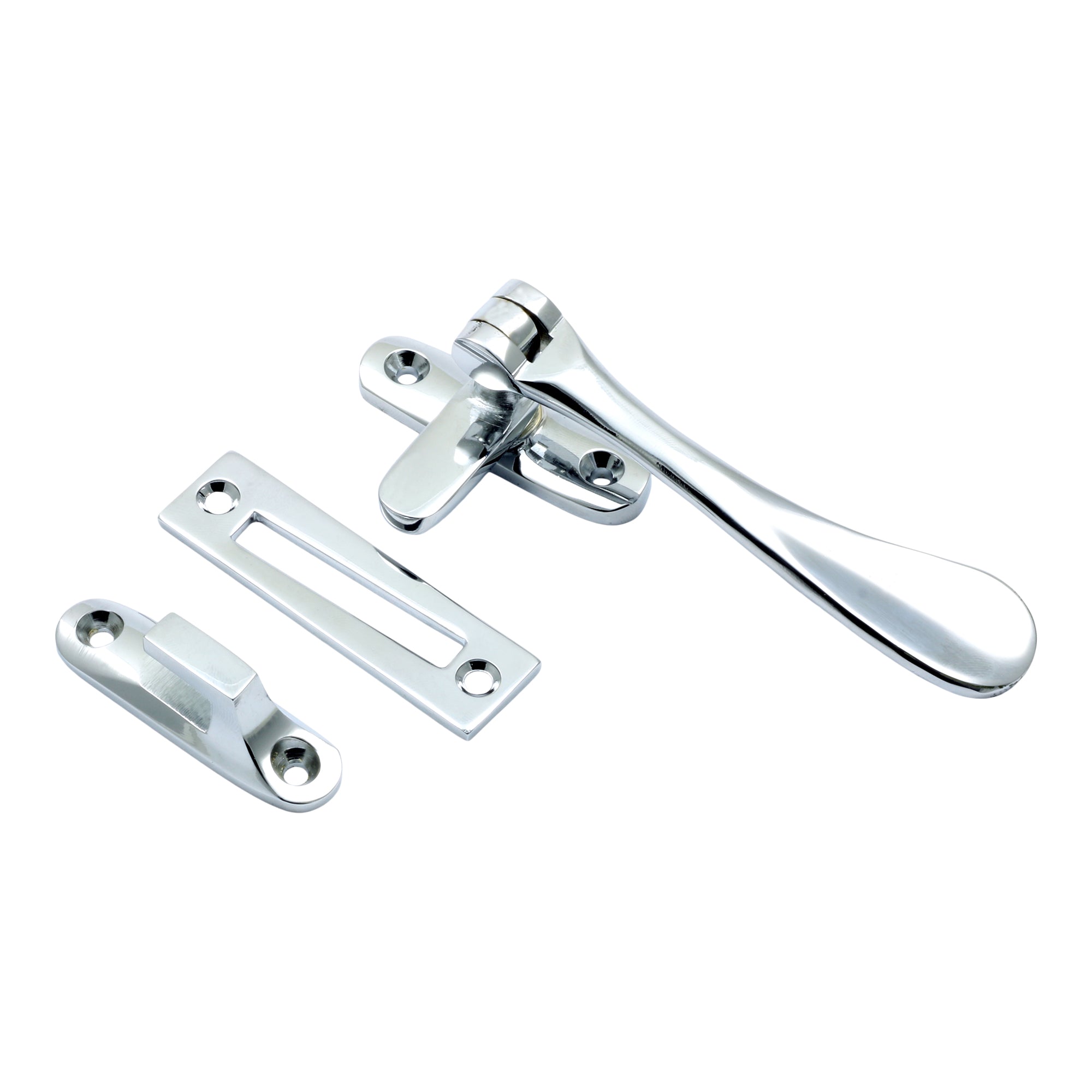 The Prima Spoon End Reversible Casement Fastener is an essential addition to your window hardware collection. Made from high-quality solid brass, this fastener is designed for longevity and reliability. The polished chrome finish adds a sleek and modern touch, ensuring it complements any decor. With dimensions of 96mm x 23mm for the handle and a complete set including a hook and mortice keep plates, this fastener is both functional and aesthetically pleasing. Ideal for enhancing the security and style of your casement windows, it combines practicality with elegance.