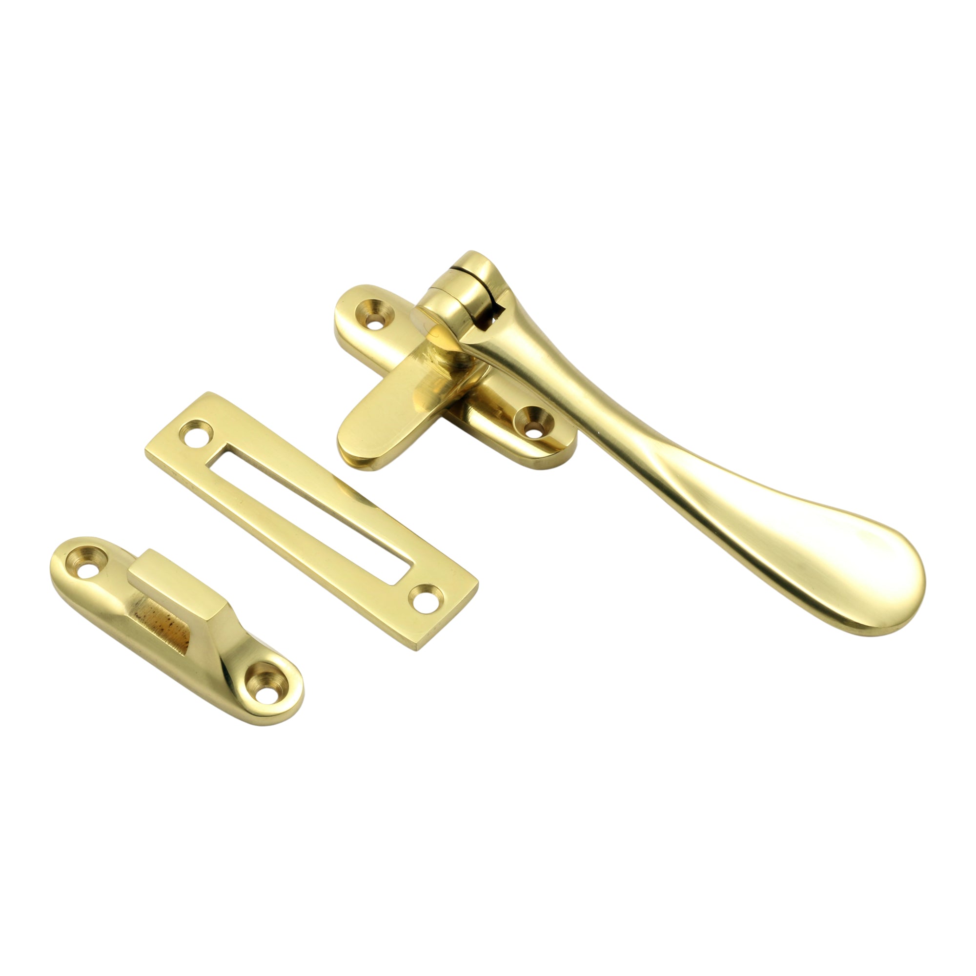 Enhance your windows with the Prima Spoon End Reversible Casement Fastener, crafted from high-quality polished brass for lasting elegance. This fastener features a smooth, spoon-shaped handle that provides a comfortable grip and easy operation. Supplied with a hook and mortice keep plates, this fastener ensures secure closure for your casement windows. Its dimensions of 96mm x 23mm make it a versatile choice for various applications, while the polished finish adds a touch of sophistication to any decor.