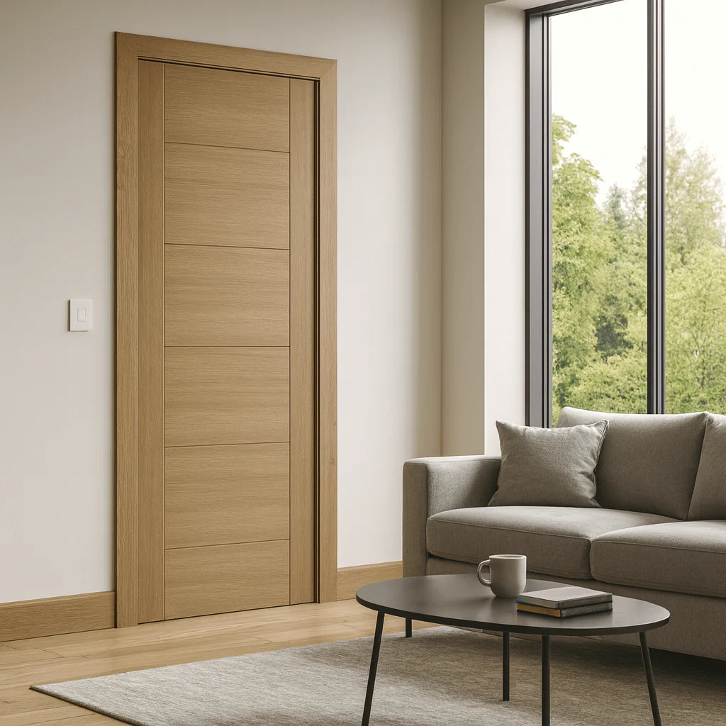 The Oak ISEO Quarter Cut Prefinished door combines elegance and durability with its solid engineered core, ensuring long-lasting performance. The door features a closed pore finish, offering a smooth and refined surface that enhances its deluxe appeal. Pre-finished with a clear satin lacquer, this door is ready for immediate installation, saving you time and effort. The oak veneer showcases a natural wood grain, adding a touch of sophistication to any interior space. Available in a wide range of stock sizes, it also offers the flexibility of bespoke sizing to meet unique requirements. With a core thickness of 35 or 40mm, this door is both sturdy and stylish, making it an ideal choice for both contemporary and traditional settings. Whether used in a residential or commercial environment, the Oak ISEO Quarter Cut Prefinished door is designed to complement a variety of interior decor styles.