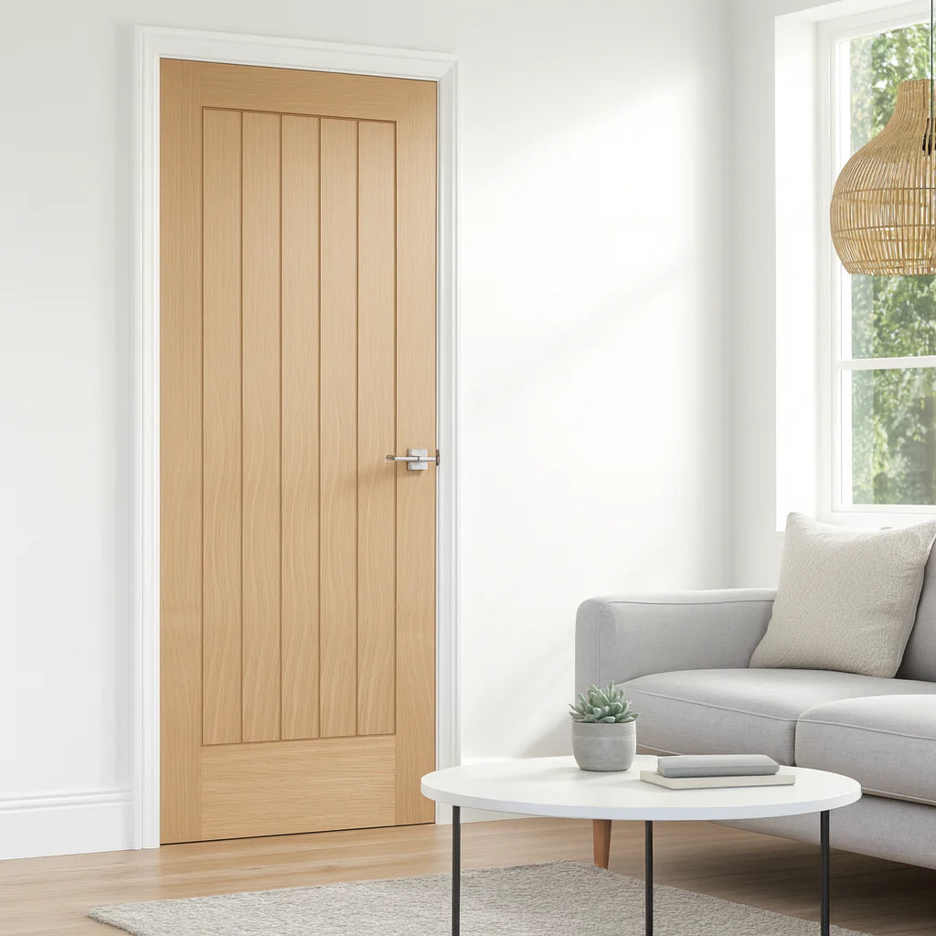 Introducing the Oak Wiltshire Prefinished door, a standout addition to our pre-finished oak range. Crafted with a popular traditional design, this door is set to impress with its blend of style and durability. Made from grooved MDF, it features 10mm solid lippings, ensuring robustness and longevity. The door boasts a solid core, providing excellent sound insulation and a substantial feel. Finished with a semi-closed pore lacquer, it offers a sleek, smooth surface that enhances the natural beauty of the oak. The Oak Wiltshire is ideal for both classic and contemporary interiors, adding a touch of elegance to any room. Its prefinished nature means it's ready to install, saving you time and effort. Compatible with a variety of settings, this door is perfect for those seeking quality and aesthetic appeal without compromise.