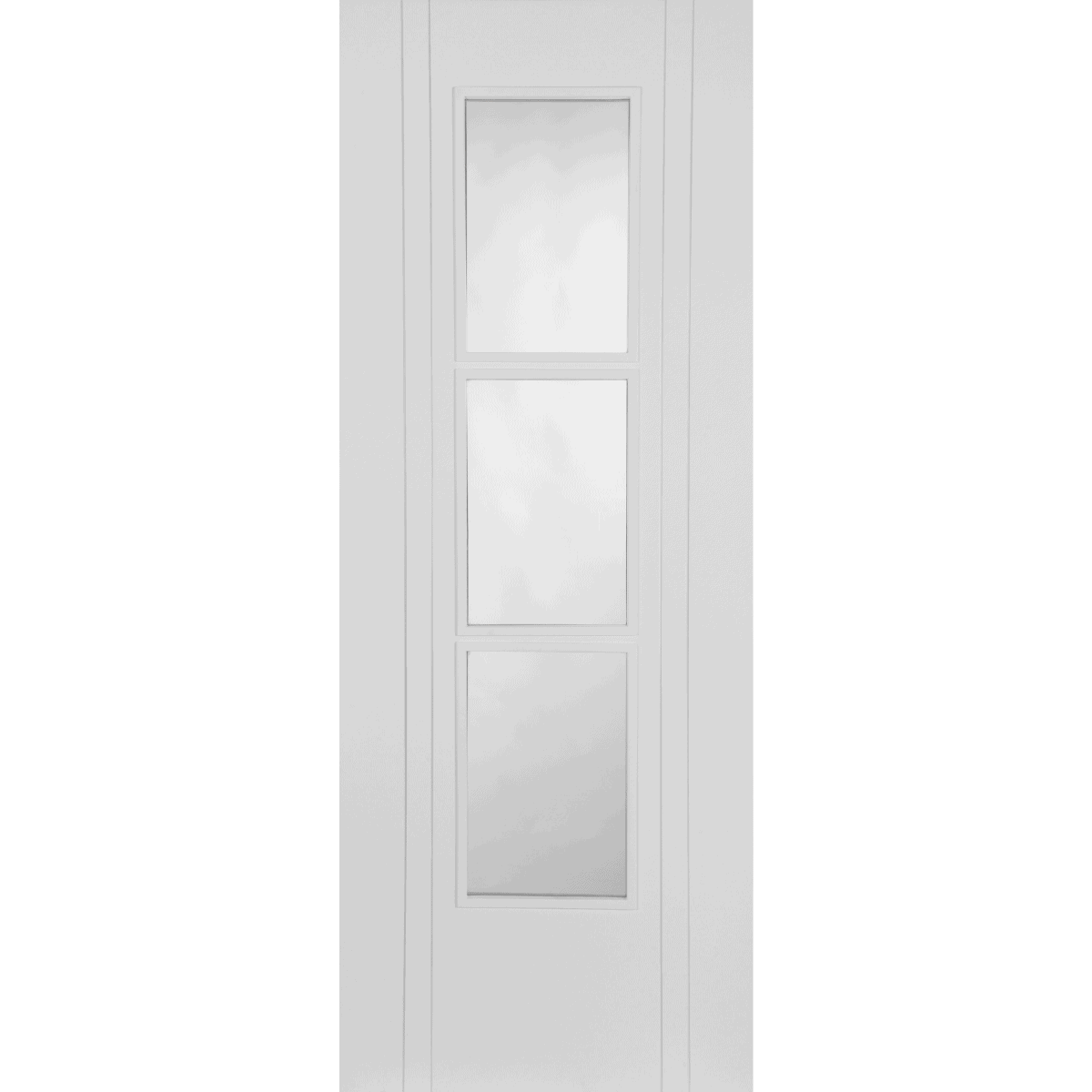 The White Primed Capri 3 Light Clear Glazed door offers a modern and elegant solution for any interior space. With its deluxe primed finish, it requires only a topcoat to achieve a fully decorated look, saving you time and effort. The door features three clear glazed panels, allowing natural light to flow through, making it perfect for connecting rooms or brightening up darker spaces. Its semi-solid core construction provides a sturdy feel while maintaining a lightweight design. The V grooves add a touch of sophistication and style. Available in a wide range of sizes, this door can also be customised to fit bespoke dimensions if required. Ideal for both contemporary and traditional settings, the White Primed Capri 3 Light door is a versatile choice that complements various interior designs. Whether you use it in a living room, kitchen, or hallway, its clean lines and white finish provide a timeless appeal.